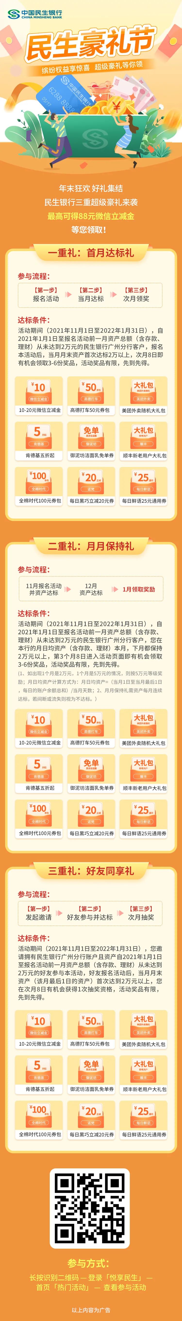 千人千券为民生银行提供缤纷权益,用户完成资产达标任务或邀请好友,即可获得海量豪礼!